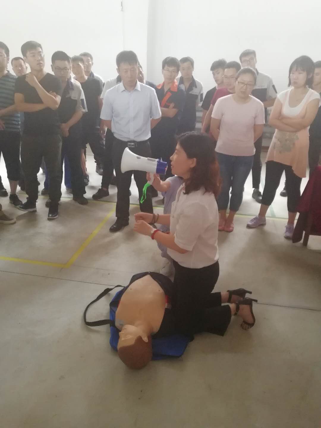 此次活動邀請沈陽市第一人民醫(yī)院副院長徐冰教授,做急救知識講座及心肺復(fù)蘇演練,徐教授針對如何掌握基本心肺復(fù)蘇技術(shù)的操作要點(diǎn)及注意事項(xiàng)進(jìn)行了細(xì)致講解,隨后利用仿真模擬人進(jìn)行急救演示,員工現(xiàn)場進(jìn)行了練習(xí)操作。